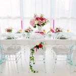 Summer Romance by Jive Events Today’s dreamy tablescape was styled by wedding and event planners Zeina and Katia over at Jive Events. Photographed beautifully by Enchanté Studios, this romantic and summery shoot features pink hues with a touch of mint and silver, colours that the Jive girls have been obsessing over for quite some time. We personally love the creative use of stacked pink books as center pieces. Below, Zeina and Katia tell us a little…