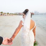 From a romantic surprise proposal, to a Bollywood inspired pre-wedding party, to a fairy-tale beach front wedding at Fish Beach Taverna, we take a look inside Dubai expats Jessica & Andy’s beautiful wedding journey. Jessica & Andy tied the knot in December 2018 at Fish Beach Taverna, an Aegean restaurant set against the stunning backdrop of the Mina Seyahi Hotel, a spot that the couple fell in love with on a date night. Read on…