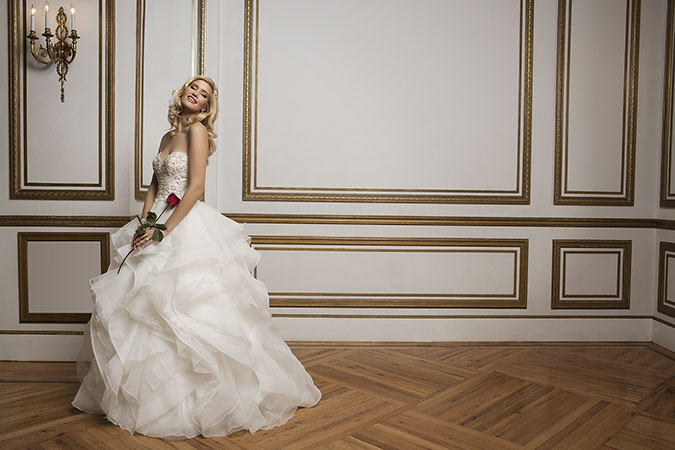Above: Justin Alexander gown in organza.