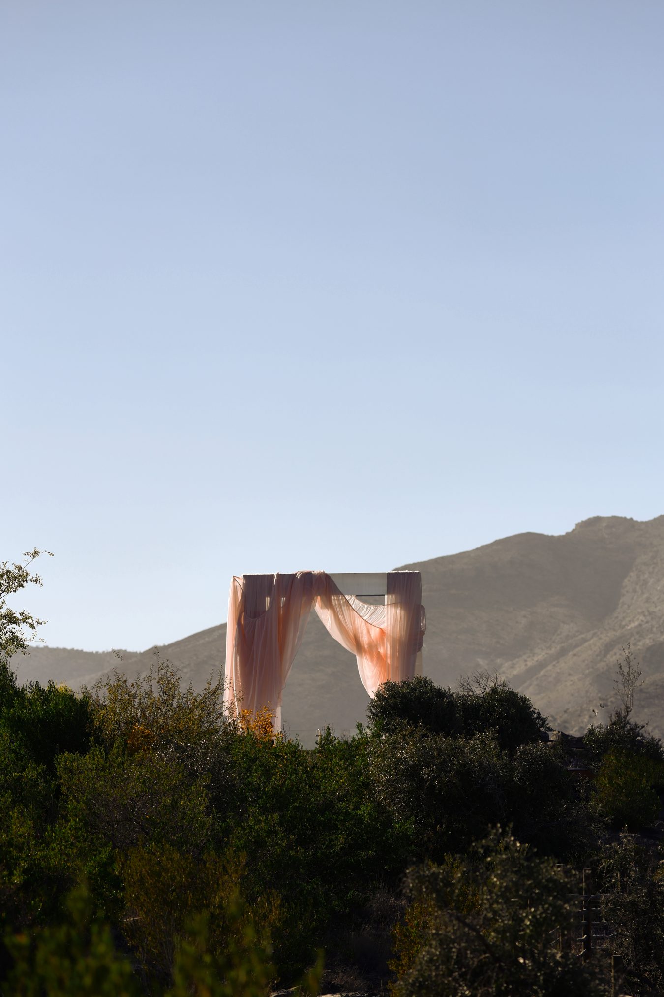 At Alila Jabal Akhdar, wind is not an obstacle, it’s a design partner. Flowing fabrics were intentionally chosen to bring movement and life to the installation. As the breeze passed through the drapery, the entire space felt alive, constantly shifting and evolving.