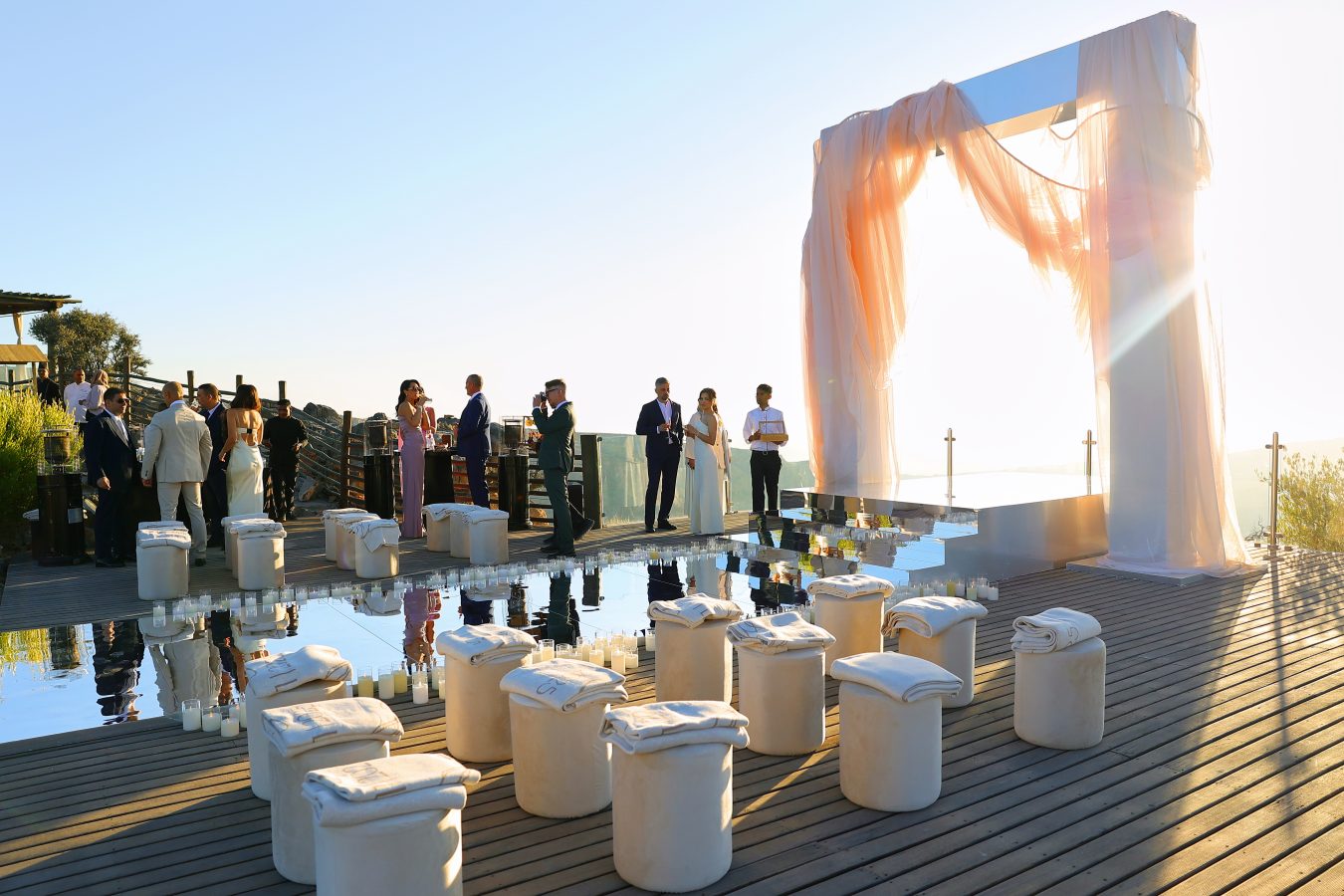 Rather than overwhelming the setting, the decor gently echoed it, allowing the horizon, cliffs, and sky to remain the true focal points.