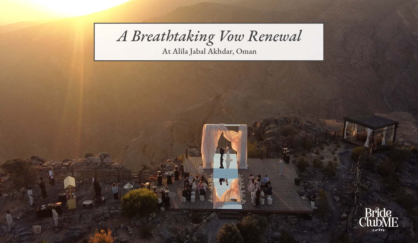 At Bride Club Me, we’re endlessly inspired by weddings that challenge tradition, celebrate meaningful design, and showcase extraordinary destinations across the region and beyond. This vow renewal at Alila Jabal Akhdar is a beautiful reminder that when the setting is powerful enough, less truly becomes more.
