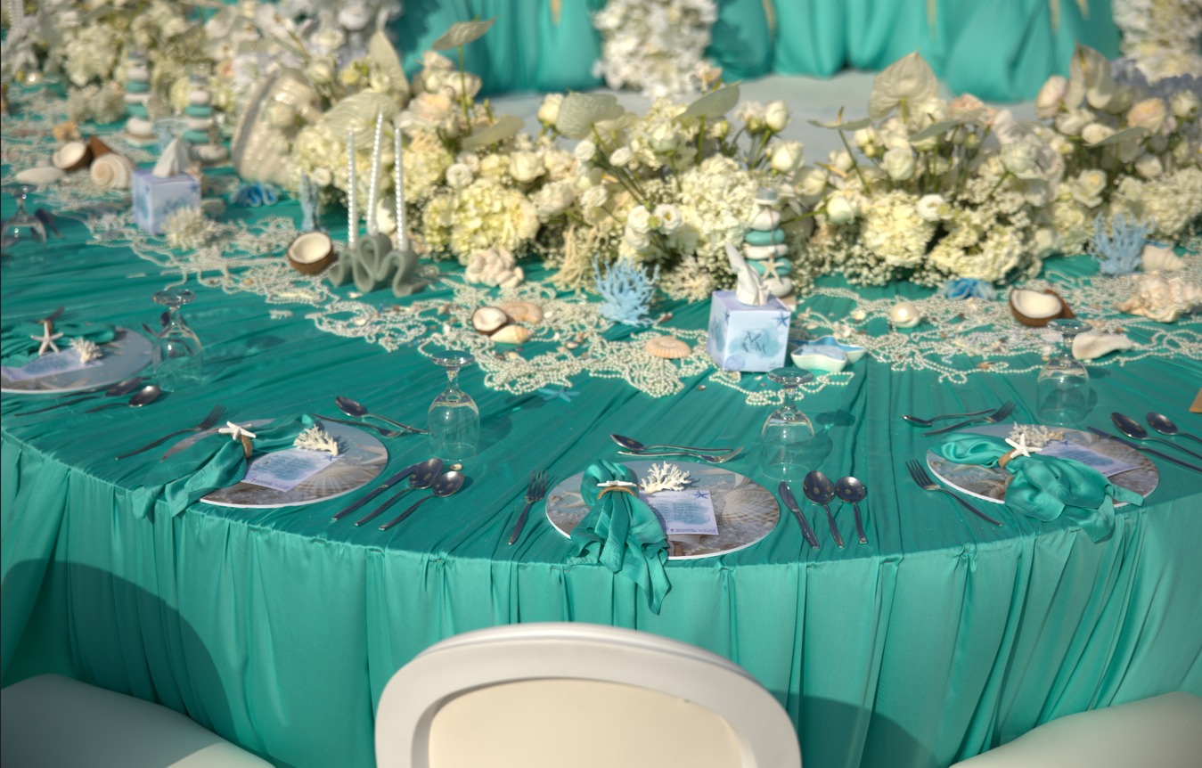 One of the most memorable elements was how everything came together so organically, from the colour palette reflecting the ocean, to the serene ambiance, to the emotional connection the couple had with the destination itself.