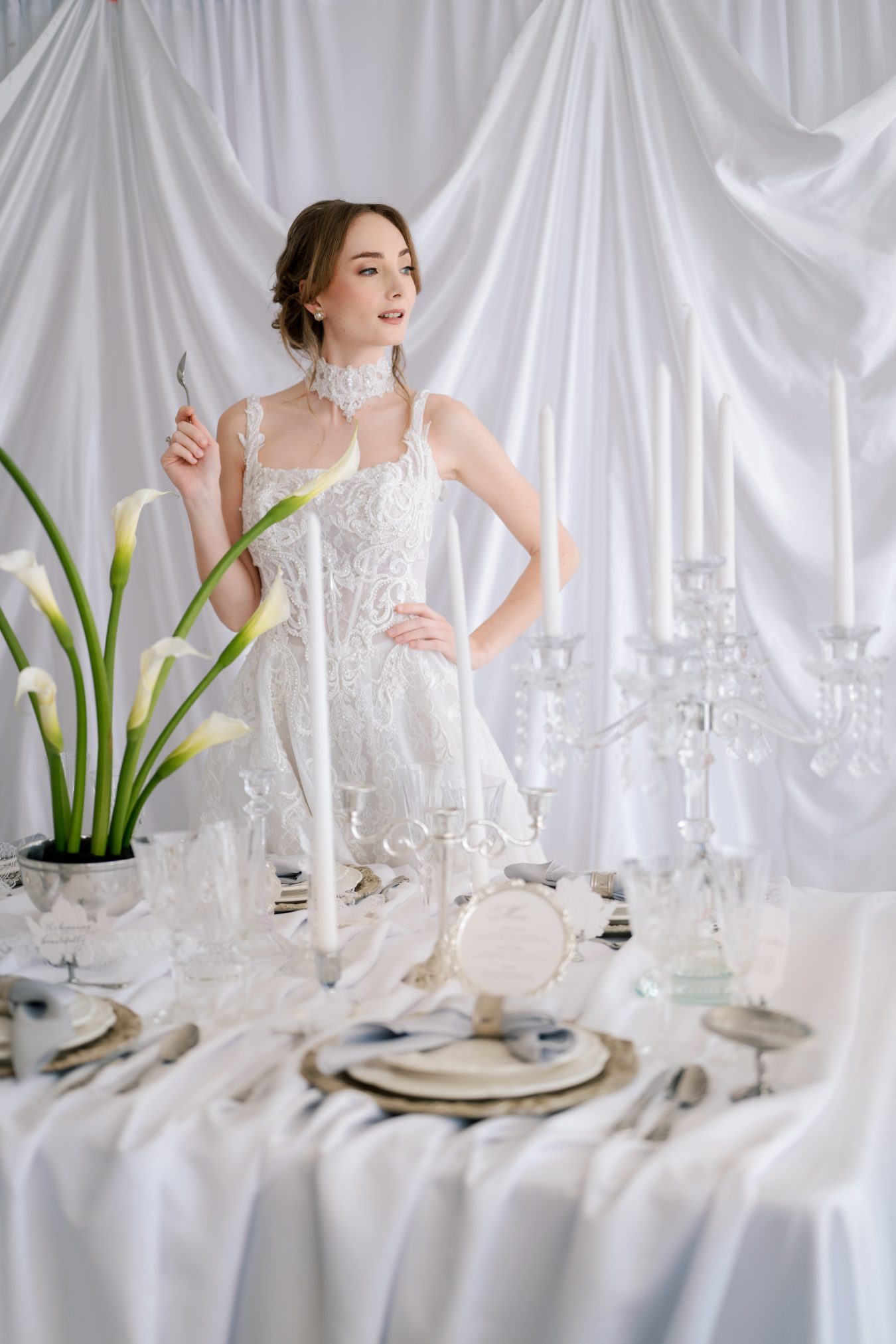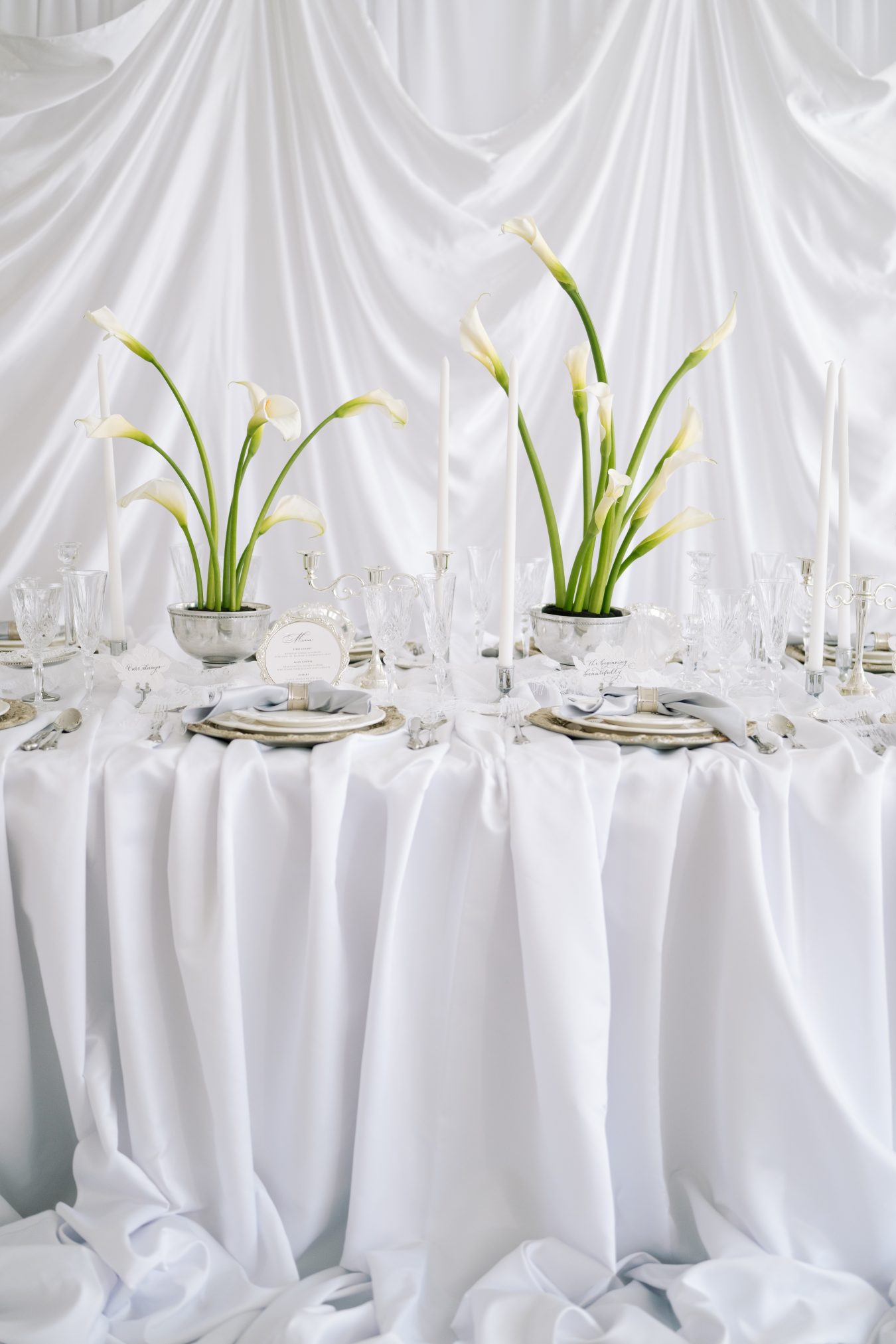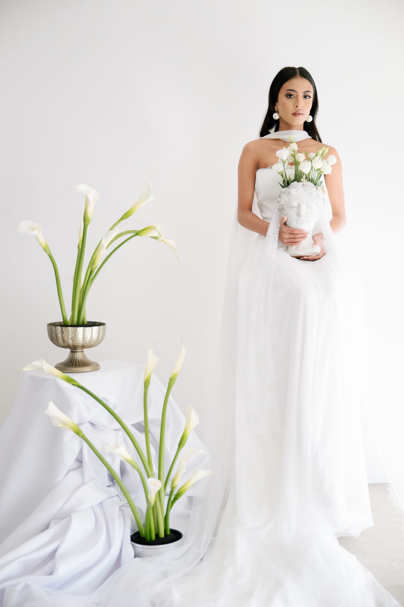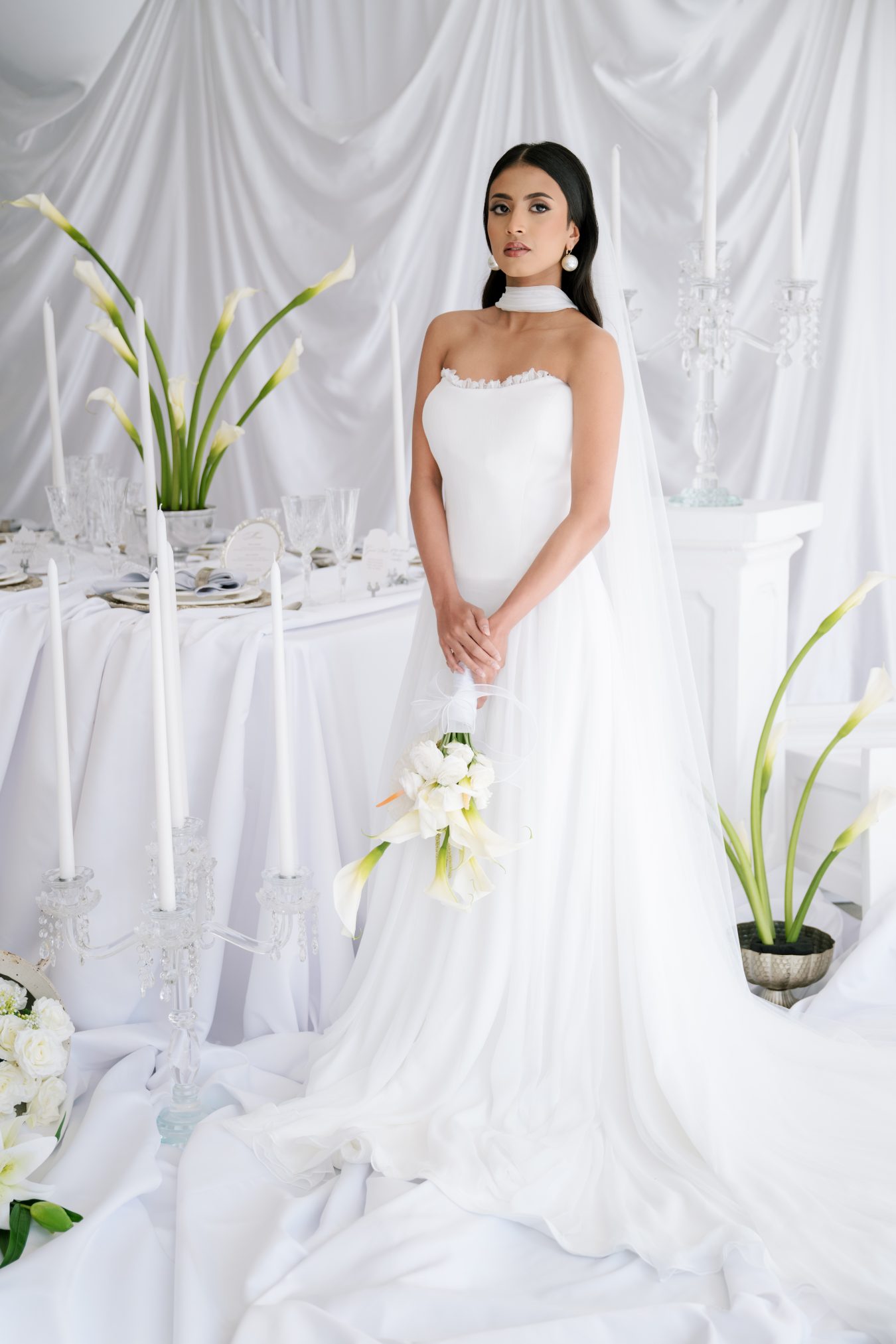 This styled shoot began with a simple yet powerful visual: falling calla lilies. Their natural elegance and sculptural form set the tone for a wedding concept rooted in softness, femininity, and quiet luxury.