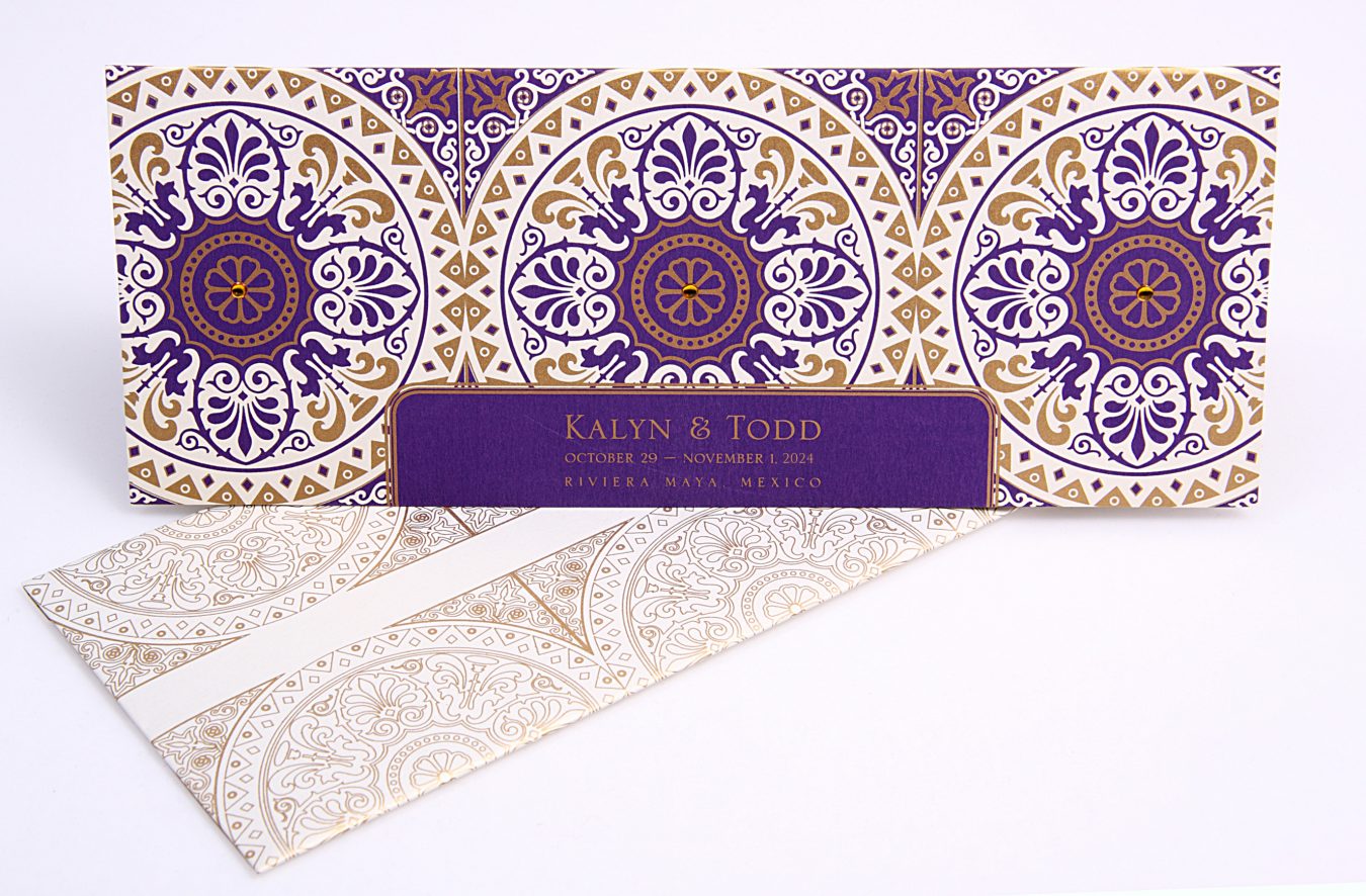 Middle Eastern invitations often showcase geometric patterns and ornate gold detailing.