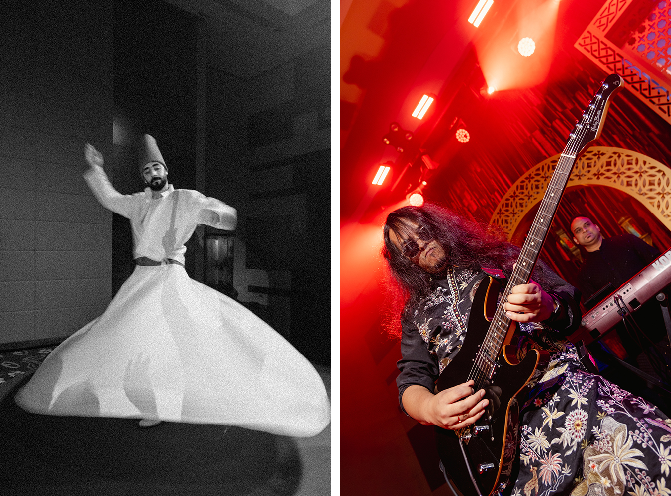 Set inside the Ballroom, the night unfolded like poetry in motion. The theme was Sufi Night glamour, layered with depth, rhythm, and drama. Twirling Darwish dancers, live performances by Indo Fuzon Band, and a carefully curated soundscape transformed the space into something transcendental.