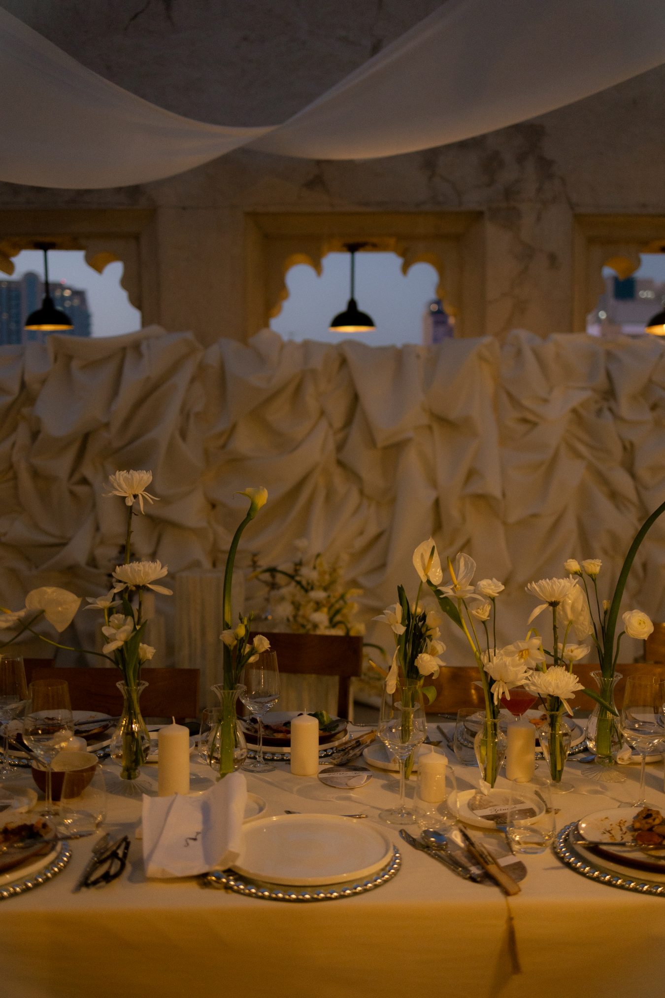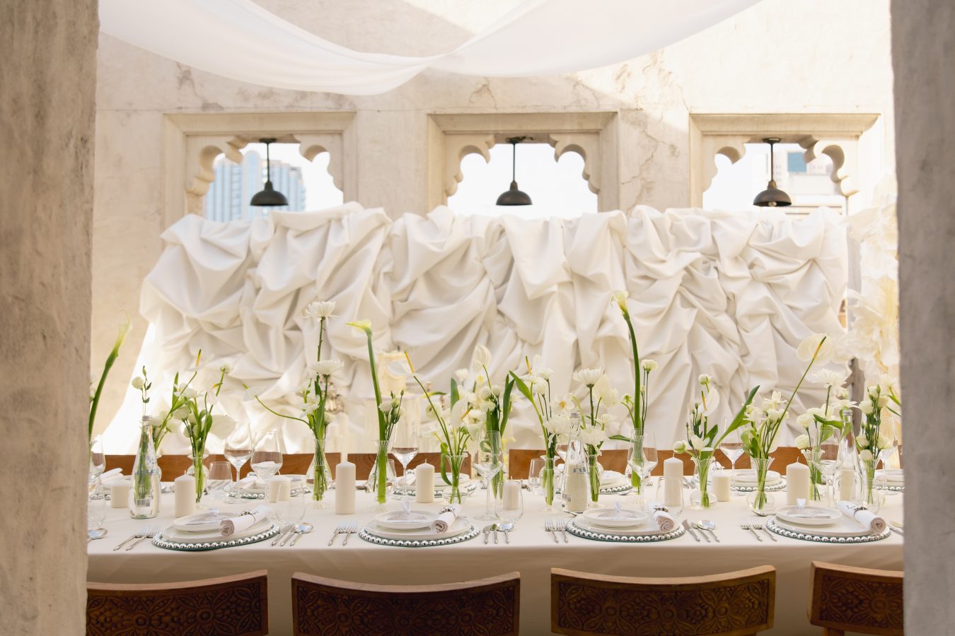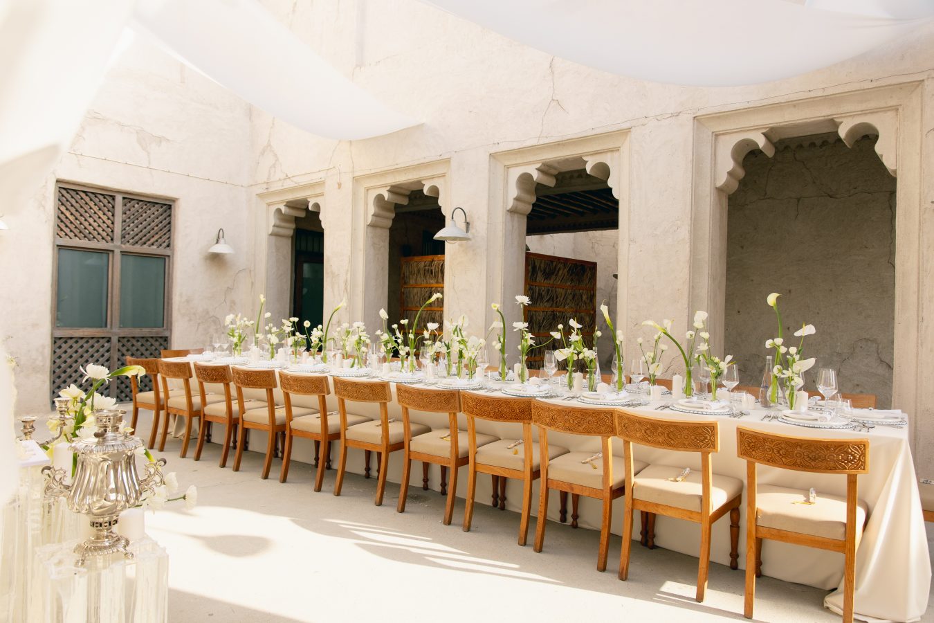 Set along the tranquil waters of Dubai Creek, their vision came to life at the charming Al Seef Heritage Hotel, where old-world charm met poetic serenity. With fewer than 50 of their closest loved ones in attendance, this celebration unfolded like a modern-day fairytale, soft, sacred, and deeply intentional.
