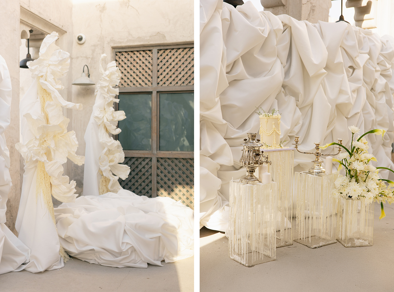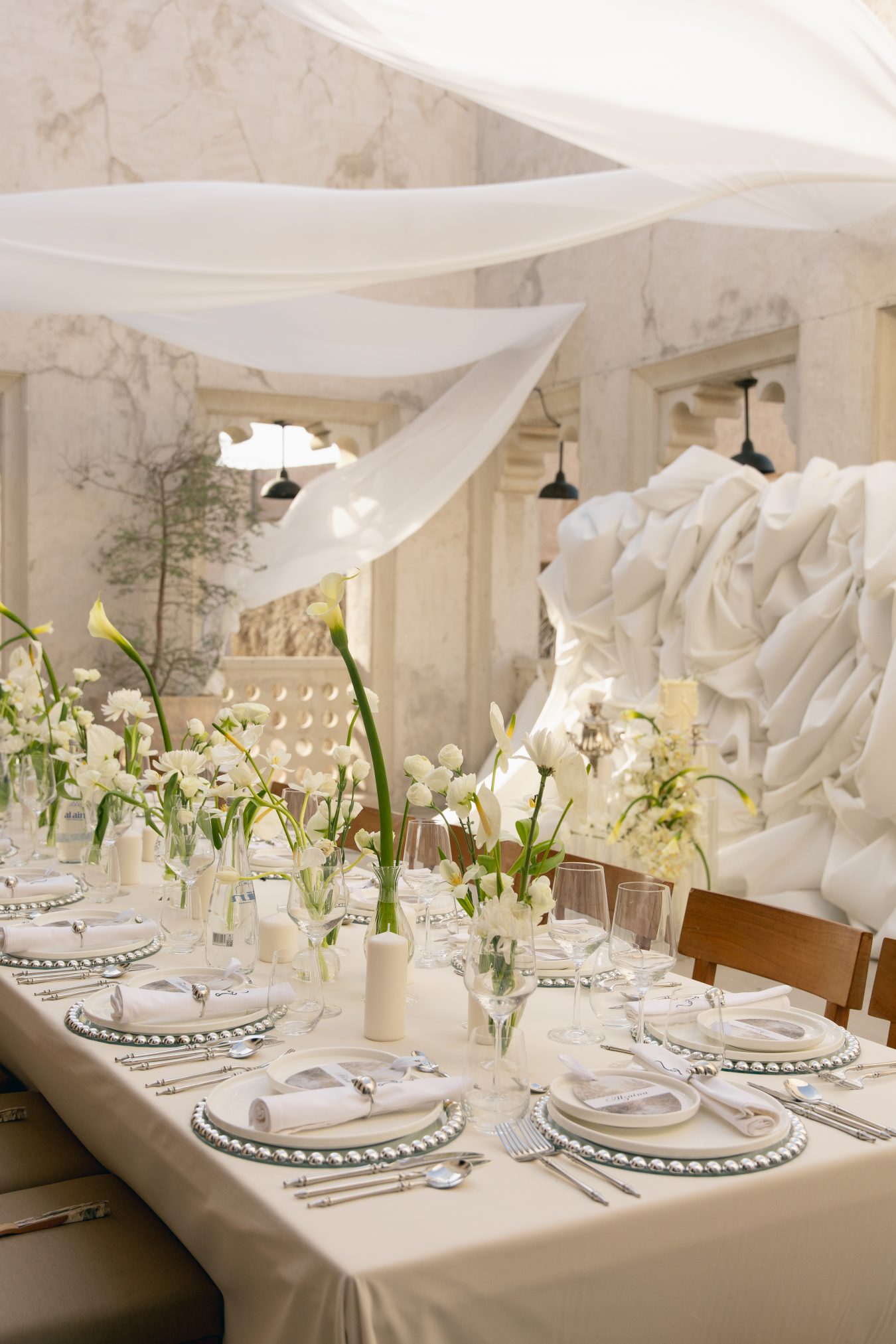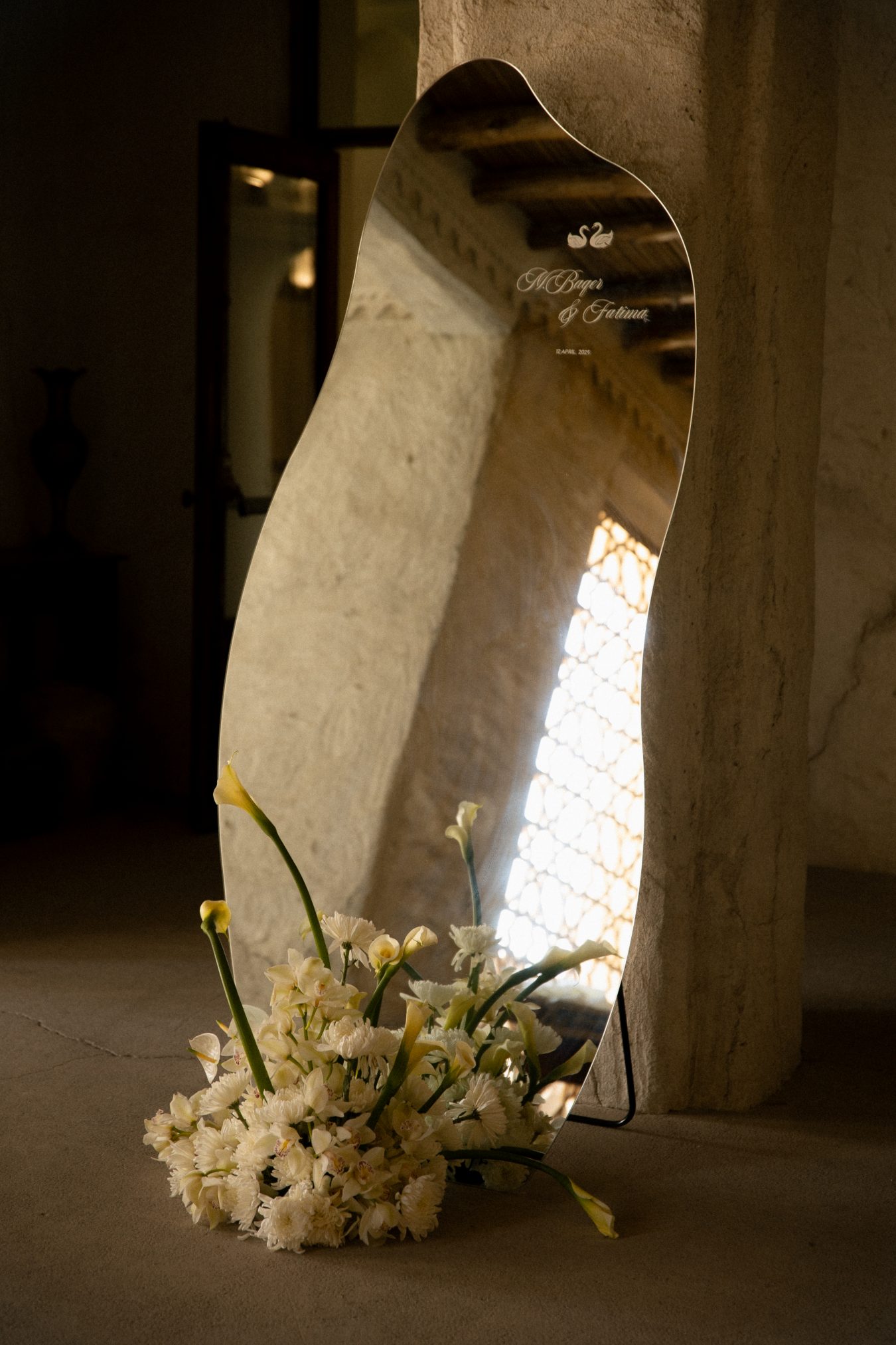 Set along the tranquil waters of Dubai Creek, their vision came to life at the charming Al Seef Heritage Hotel, where old-world charm met poetic serenity. With fewer than 50 of their closest loved ones in attendance, this celebration unfolded like a modern-day fairytale, soft, sacred, and deeply intentional.