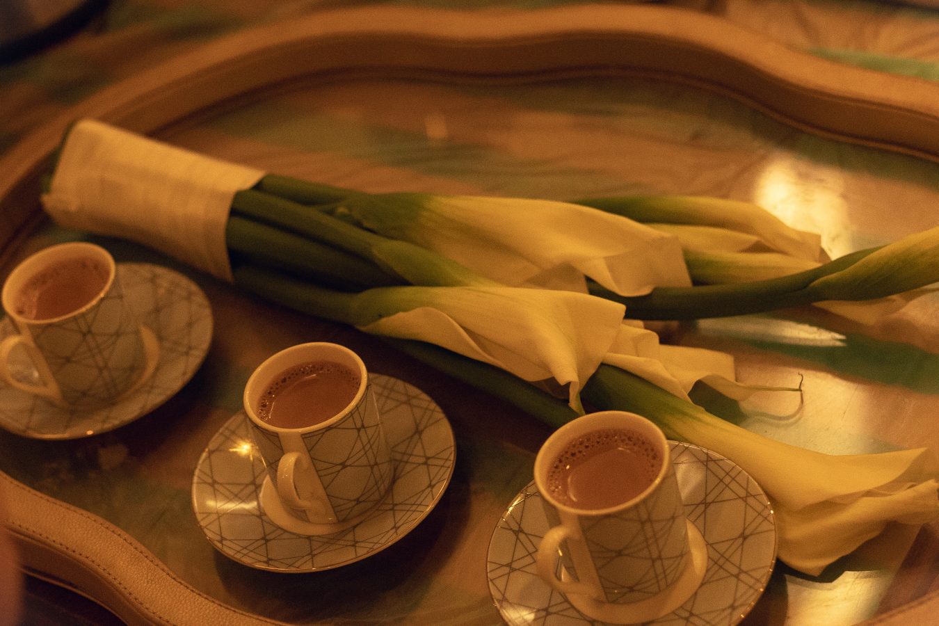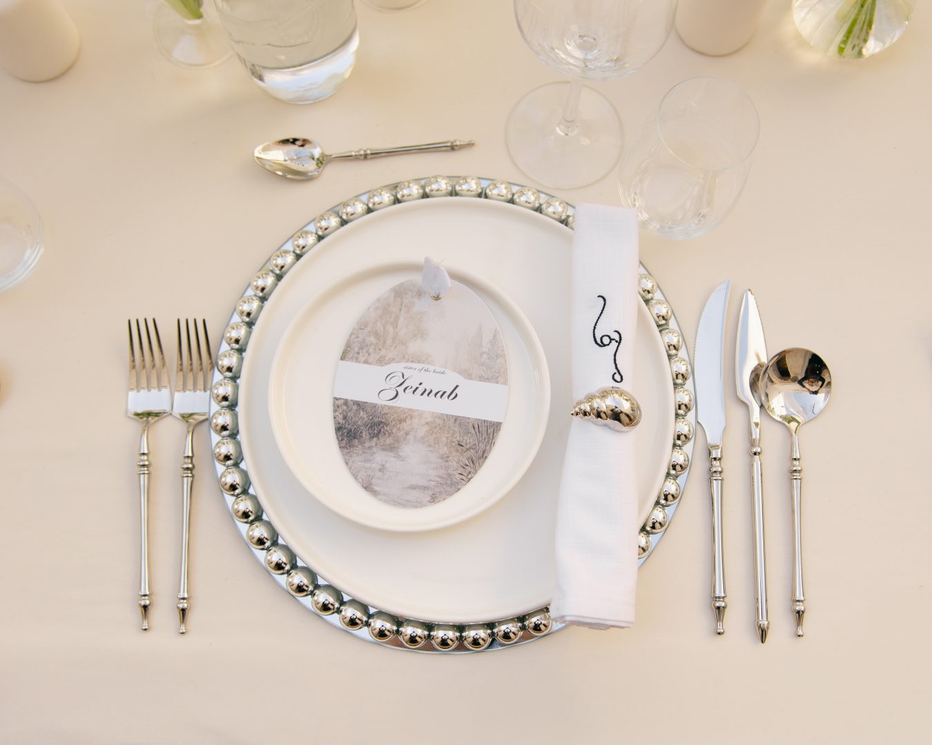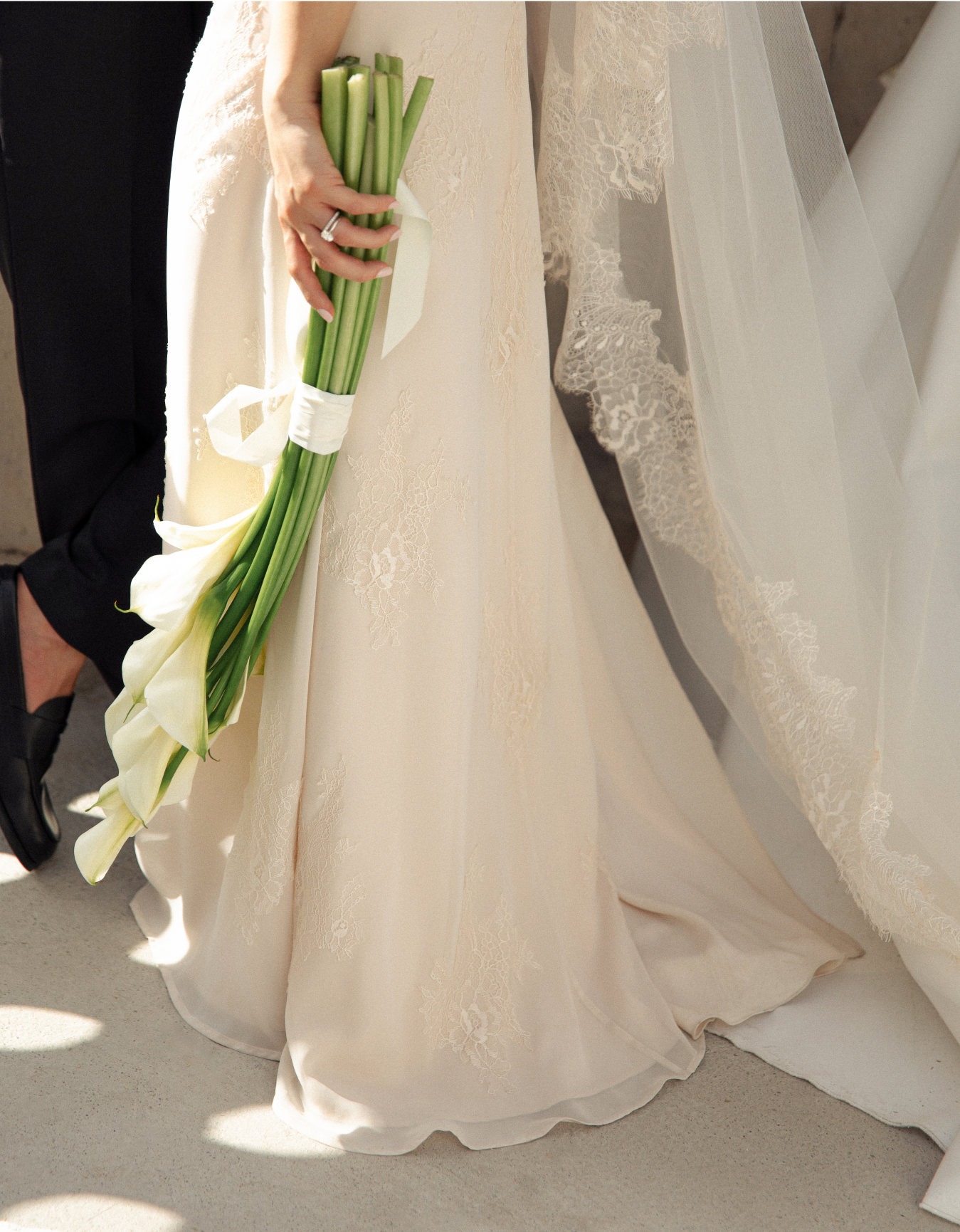 Planned and styled by Zehra Abdulla of Arabesqué Weddings, every detail evoked a sense of peaceful elegance. Think: ivory-toned florals set against ancient stone walls, calla lilies nodding in the breeze, soft linens dancing with the wind, and vintage glassware glinting in candlelight. It was a masterclass in curating magic through simplicity.