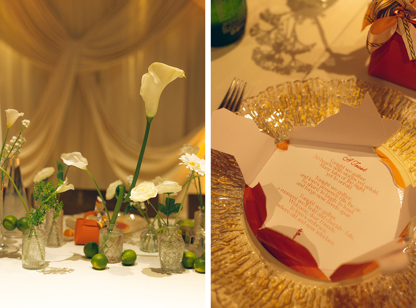 The Grazing Society elevated the evening with a beautifully curated charcuterie cart, adding finesse and thoughtful nods to the couple’s favourite indulgences. Warm, intentional, quietly elegant, just like them.